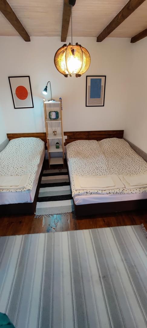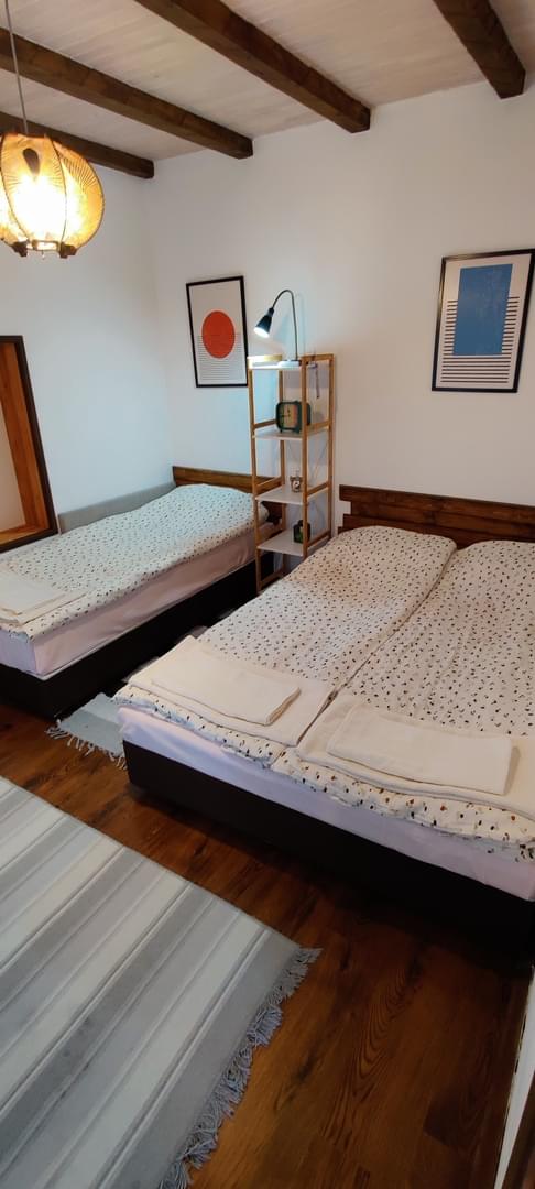 Състои се от две стаи с по 1 двойно и 1 единично легло с обща баня и тоалетна.
